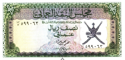 الوجه: على اليمين يظهر شعار سلطنة عمان / وفي اعلى الوسط كتب مجلس النقد العماني / اسفله كتب نصف ريال عماني / وهي بتوقيع محمد محمود مراد رئيس مجلس النقد / وفي اعلى اليمين واليسار كتي ½. الظهر: يظهر نقوش اسلامية وفي الوسط قلعة الجلالي بمسقط / وفي الاسفل كتب بالإنجليزي مجلس النقد العماني/ وفي الاعلى جهتي اليمين واليسار كتب ½. |