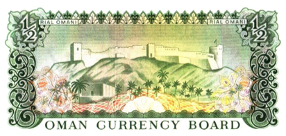 This banknote was printed during the reign of Sultan Qaboos bin Said, who ruled from 1970 to 2020. Obverse: On the right is the emblem of the Sultanate of Oman / At the top center is written “Oman Currency Board” / Below it is written “Half an Omani Rial” / It is signed by Mohammed Mahmoud Murad, Chairman of the Currency Board / At the top right and left is written “½”. Reverse: It shows Islamic inscriptions and in the middle is Al Jalali Fort in Muscat / Below it is written in English, Oman Currency Board / Above, on the right and left sides, it says ½. |