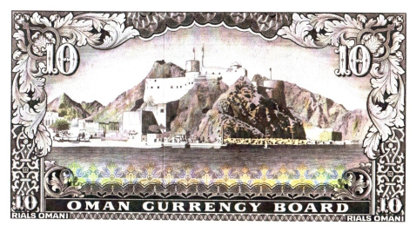 الوجه: على اليمين يظهر شعار سلطنة عمان / وفي اعلى الوسط كتب مجلس النقد العماني / اسفله كتب عشرة ريالات عمانية / وهي بتوقيع محمد محمود مراد رئيس مجلس النقد / وفي أعلى اليمين واليسار كتب 10. الظهر: يظهر صورة قلعة الميراني بمسقط / وفي الاسفل كتب بالإنجليزي مجلس النقد العماني/ وفي الاعلى جهتي اليمين واليسار كتب 10. |