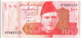 الوجه: اللون الرئيسي أحمر، صورة محمد علي جناح / في الأعلى كتب بالباكستاني (بنك الدولة الباكستاني) اسفها كتب 100 روبية / وفي اقصى جهة اليمين كتب تاريخ الإصدار سنة 2019م. الظهر: في الوسط صورة لمقر إقامة القائد الأعظم في زيارات / وكتب في الاعلة بالإنجليزية (بنك الدولة الباكستاني) / اسفله كتب 100 / وفي الأسفل للورقة كتب بالإنجليزية 100 روبية المقاس: 65 x 140 ملم |